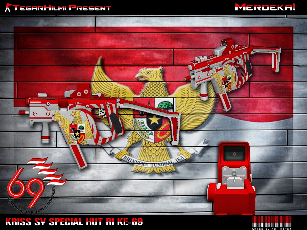 Untuk memperingati hari ulang tahun Negara Republik Indonesia Ke-69. Hari ini, saya akan share skin weapon Kriss SV Special HUT RI KE-69 walaupun skin ini tidak termasuk kedalam event 17 Agustus XD hihihi, tapi don't worry.
